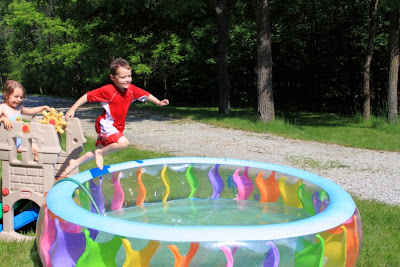 Mommy filled our pool with water yesterday so when we got home from school today it was really warm. I liked jumping! - Meghan